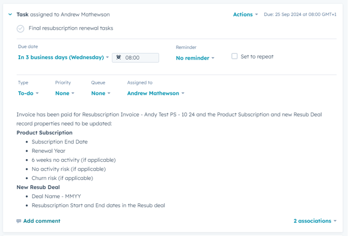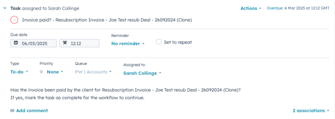 Once the TASK has been completed this will move through the resubscription workflow. If this TASK is not updated, it will prompt a delay message however it will automatically move through the process if the TASK is not completed.